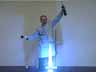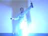A long glass tube is stoppered, and filled with NO gas, a colorless, odorless toxic gas, via water displacement to preclude the introduction of oxygen. To the stoppered tube is added 2.5 mL of CS2, a clear, colorless, odorous, toxic liquid with a high vapor pressure. The two reactants are mixed by inverting the tube several times. Then the tube is placed in its holder, the up stopper is removed, and the gas mixture is lit via a match. The ensuing reaction is highly exothermic, resulting in heat, bright blue light, and a loud harmonic sound as the gas ignites and escapes.