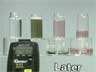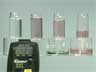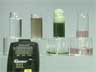 Four vials contain sodium potassium tartrate solutions in hydrogen peroxide
