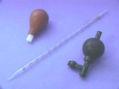 Some pipets are not graduated all of the way to the pipet tip, and the final volume must be read from the pipet. Therefore, the final volume MUST be on the scale - DO NOT allow the bottom of the meniscus to go below the last graduation mark. For a graduated pipet, the volume transferred is determined by calculating the difference between the intitial and final volume in the pipet (the initial and final volume must be recorded).
