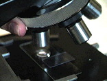 The defects in a plastic disk caused by alpha particles from radon decay are enlarged by etching with NaOH and then viewed under a microscope. The number of etch pits in a given area of the plastic disk can be used to determine radon level in the location sampled. Adjusting both focus and polarization are important in identifying the spherical etch pits. (Companion Experiment 6)