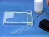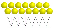 The non-directional attraction between soap bubbles models the non-directional attraction between metal atoms, and a close-packed array is formed. A slider is used to apply stress to the array. (Companion Demonstrations 5.1and Figure 6.4)