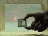 PDMS diffraction stretch A laser is positioned to shine through a thin elastomer slab containing the square arrays of features on its surface. The PDMS slab is stretched by gently pulling the string. The diffraction pattern changes from square for the unstretched elastomer to rectangular upon stretching, demonstrating the reciprocal lattice effect. (JCE) |