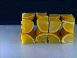 An orange can be cut into eight eighths that can be re-assembled to represent the 1/8 fractional volume contribution from the atom at each corner of a primitive cubic unit cell. (Companion Demonstration 3.1)