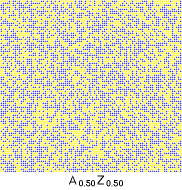 Substitutional solid solutions with a constant total composition of A + Z and random placement of these atoms at the sites at which they occur in the structure. Blue diamonds represent atom A, and yellow squares represent atom Z. (Companion Figure 3.14)