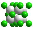 The green atoms fill cubic holes formed by eight identical larger atoms; the coordination number of each green atom is eight. (Companion Figure 5.11)