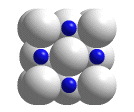 The blue atoms fill octahedral holes formed by six identical larger atoms; the coordination number of each blue atom is six. (Companion Figure 5.14)