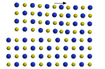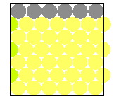 More atoms fit in the same area when they are close packed rather than square packed. This movie shows the shifting of atoms from the less efficient square packing to the more efficient close packing. This demonstration can be performed using, for example, a 6 x 6 grid of pennies on an overhead projector.