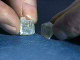 A diamond scribe scratches a piece of glass. (Companion Demonstration 7.8 and Experiment 2)