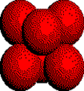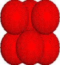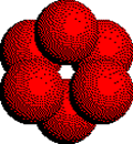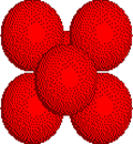 Octahedral holes are formed by three ions in one plane and three ions in an adjacent plane of a close packed array of anions. Click the link on the right to highlight the octahedron. Then click the button to rotate the tetrahedron. |