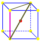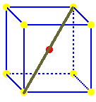 The length of the body diagonal can be determined by measuring the edge length of the unit cell by x-ray diffraction. The body diagonal is part of a right triangle composed of a unit cell edge and a face diagonal. We can calculate the length using the Pythagorean Theorem. The face diagonal is part of a right triangle with two unit cell edges. The length of the body diagonal, d, in a cubic cell can found from the length of the cubic unit cell edge. Use the links on the right to demonstrate how to calculate the body diagonal length. The links above lead to definitions.