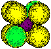 The length of the body diagonal is equal to two radii of the Cs+ ion plus two radii of the Cl- ion. From the radius of one ion and the length of the body diagonal, we can find the radius of the other ion. Click the links on the right in order to illustrate these topics. The underlined word above links to a definiton. |