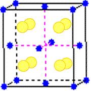 Each cation in a compound with the CaF2 structure is surrounded by eight anions at the corners of a cube. Each anion is surrounded by a tetrahedron of cations. The coordination number of the cations is eight; that of the anions, four. The coordination geometry of the cations is cubic; that of the anions, tetrahedral. Click on any cation or anion to highlight the coordination polyhedron. The underlined texts above link to definitions. Some of the components of the cubes around ions in the drawing are located in adjacent unit cells. |