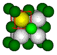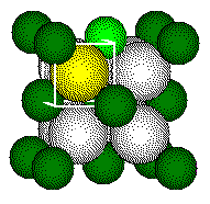 highlighted calcium ion and highlighted fluoride touch along a body diagonal