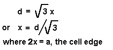 Calculations involving fluorite cell dimensions or ionic radii use the geometry of the small cube. The fluoride ion is at the center of the small cube and the fluoride ion and the calcium ion lie along the body diagonal of the small cube. The distance between the center of Click the links on the right to help illustrate these concepts.