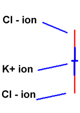 KCl is isomorphous with NaCl, with a cell edge of 628 pm. We can determine the radius of the potassium ion from the cell dimension and the radius of the chloride ion, 181 pm.
