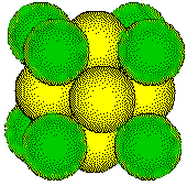 A face-centered cubic unit cell is a cube with lattice points at the corners and a lattice point in the center of each face. The atoms in a face-centered cubic structure are located on the lattice points. Click the links on the right to demonstrate these concepts. |
