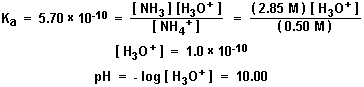 This is how a buffer maintains a near constant pH. Every buffer is made up of a conjugate acid-base pair. If an acid is added to the buffer, it is neutralized by the base; if a base is added to the buffer, it is neutralized by the acid. What is the pH of this buffer solution?The equilibrium between ammonia (NH3) and ammonium (NH4+) can be described with the chemical equation: NH4+ + H2O