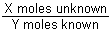 The stoichiometric factor will always have the same form, with the unknown material (and its stoichiometric coefficient (X) from the balanced chemical equation) in the numerator and the known material (and its stoichiometric coefficient (Y) from the balanced chemical equation) in the denominator.