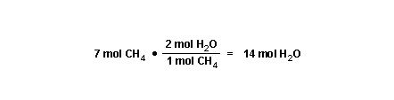 Stoichiometric FactorsIn the previous section, it was relatively easy to predict that 14 moles of water would be produced if seven moles of methane were burned: