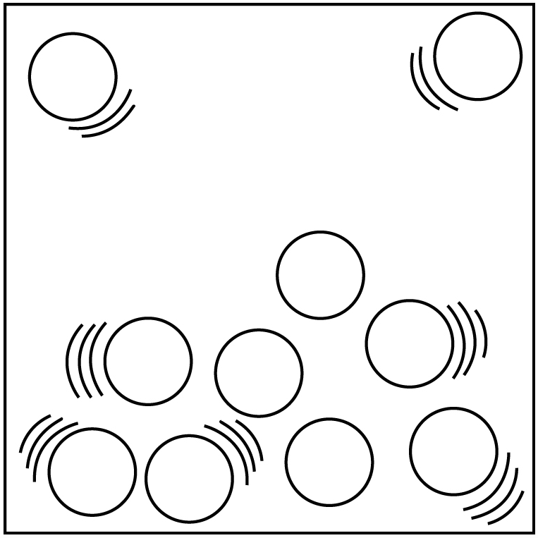 We discuss the flat lines found on the graph during the phase changes and why on the side of a box of Hamburger Helper the cooking times are different if you live at high altitudes. Third, I run my students through the calculations associated with specific heat of ice vs water vs steam and the Heat of Fusion and Vaporization during the phase changes. The simulation allows us to check our answers. However, what was really unique about using the AACT simulation was that as we clicked on the parts of the graph we saw a visual representation on the particulate level of what the water looks like at that location marked in the boxes as T1 and T2. As you can see below, water is depicted as a single circle, but what my students noticed was the so called "trail lines" that were associated with the circles. My students quickly understood that the greater the number of trail lines means that the particles are moving faster. We noticed that some of the circles in the same pictures had the same number of lines but some were shorter than others. Students understood this to mean that not all particles in the same phase are moving with the same amount of energy. I don't know if that was intended, however it got the concept across so I was excited to see where this would go next.
