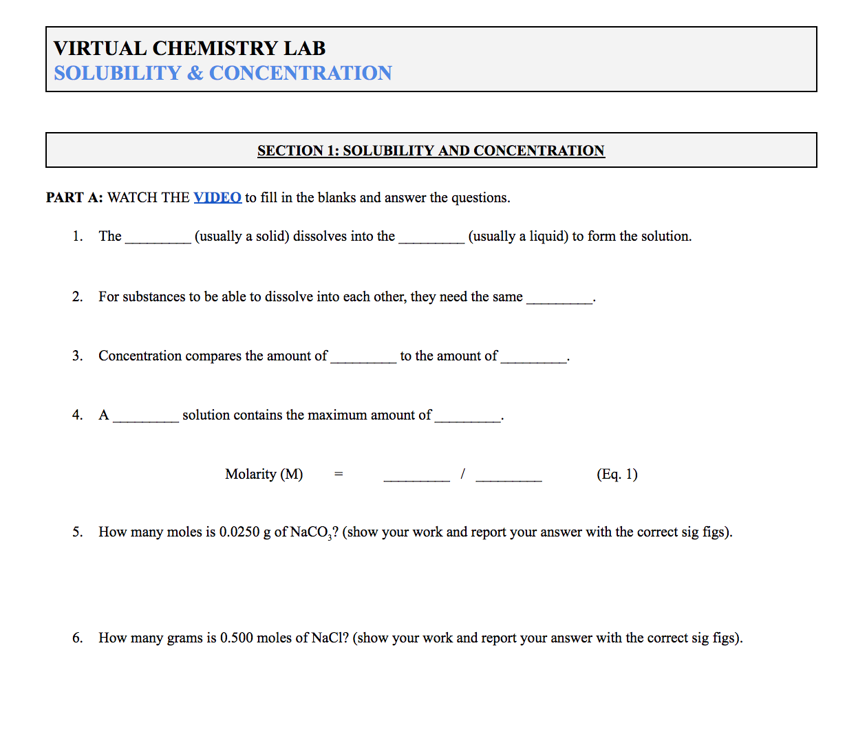 Solubility and Concentration - A Free Virtual Chemistry Lab Activity