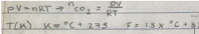 ● The volume of the bag you are going to use so that you can determine how much gas is needed to fill it. ● Amount of vinegar used in the experiment. ● Amount of baking soda used in the experiment. ● How are you going to calculate moles of CO2 gas. Find the equation to calculate moles of gas (formula). ● Balanced equation of materials/chemicals. ● The timing and how long the reaction takes place. |