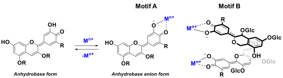 Figure 3: Representative anthocyanin/metal ion binding motifs