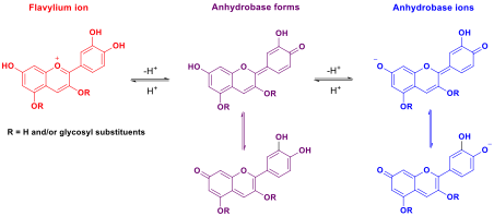 Scheme 3 shows the reversible process with cyanidin-derived dyes extracted from red cabbage, however similar results were also obtained from anthocyanin extracts from rose petals, begonia petals, blue hydrangea sepals and aqueous black bean extract.