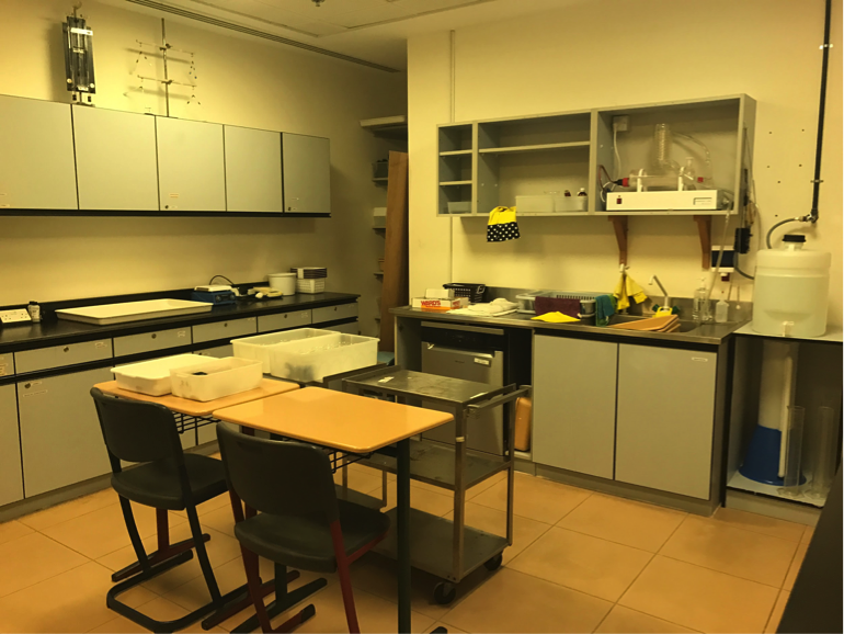 Figure 1C - Chem prep room. We distill all of our own water in this room. There are three prep rooms in this school, each connecting to two different labs.