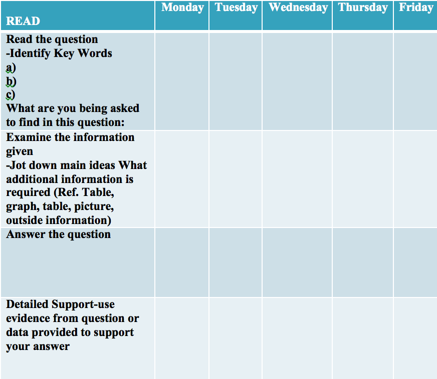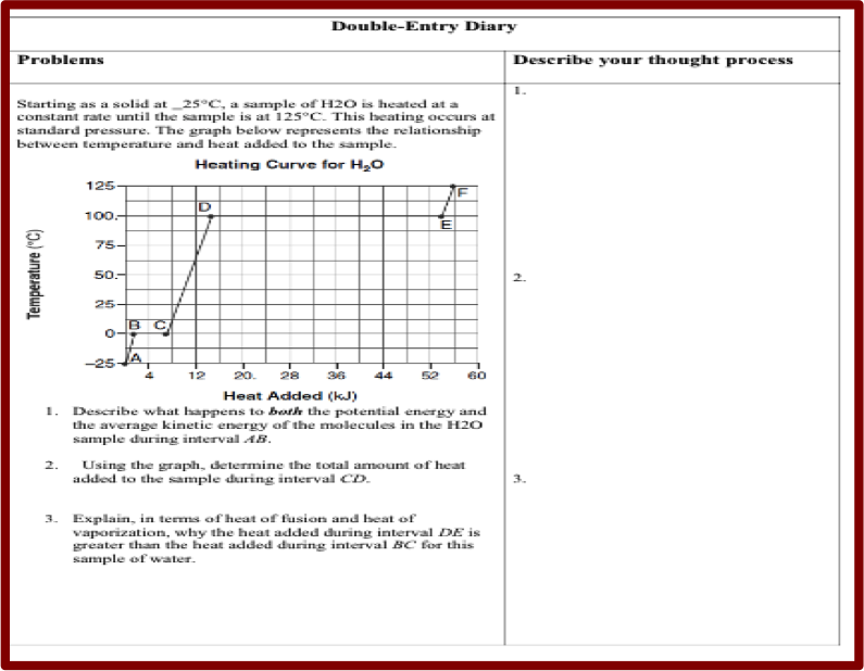 The Double Entry Diary station asks students to divide their notebook paper in half. On one side, they write down notes, quotes and interesting facts as they read the article. On the right-hand side they write their reaction to what they wrote on the left hand side. (See Figure 5C.) This has been adapted for multi-step questions where students are required to answer the question on the left and describe their thought process on the right column.
