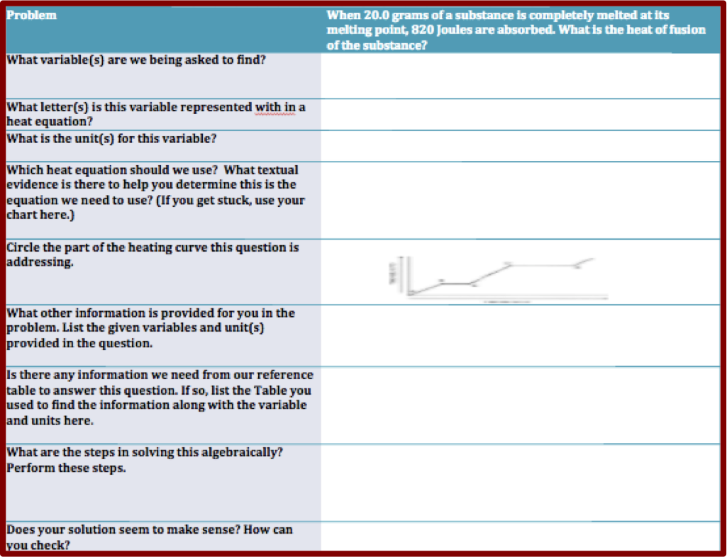 Thanks! I added a thermochemistry scaffold, that contains a variety of heat problems in the supporting information. I tend to use a similar scaffold for any math problem to ensure students understand which variable is associated with each letter/symbol in an equation. Feel free to adapt and edit as you see fit.