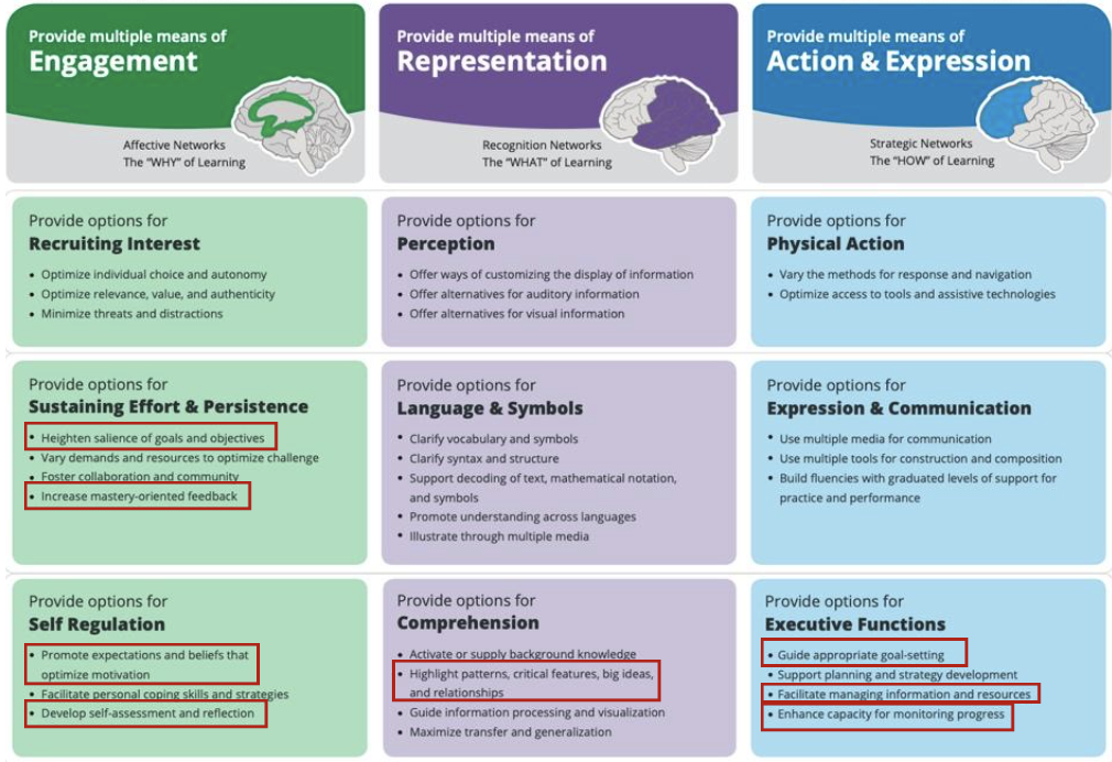 Figure 8: UDL Infographic with highlighted areas (CAST, 2018)