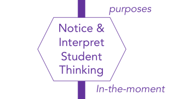 When teachers take an inferential approach towards what they notice and interpret in their students' work, they are taking a dialogic stance by focusing on the sensibility of students’ responses toward building on the students’ ideas. One strategy that teachers who are noticing and interpreting inferentailly is to look for assumptions, in which they identify underlying assumptions driving students’ thinking. Teachers who take the inferential stance to noticing and interpreting may also experience‐map by recognizing students’ mapping an individual experience to explanation, and vice versa. Teachers taking an inferential stance towards noticing and interpreting may look for inconsistency by seeking out inconsistency in a specific student’s reasoning. They may also seek out specific confusion amongst their students, or recognize cross‐purposes when two or more students are talking about different issues. Finally, teachers that are noticing and interpreting inferentially may focus on student affect by recognizing students’ emotions as an important factor to attend to.1