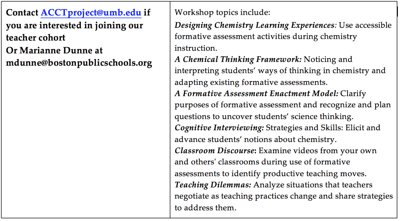 This opportunity is now closed. Contact ACCTproject@umb.edu if you are interested in joining our teacher cohort OR Marianne Dunne at mdunne@bostonpublicschools.org