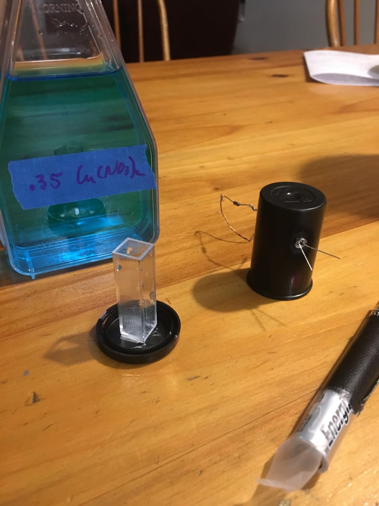 I was inspired by Tom Kuntzleman's blog, (and corresponding Journal of Chemical Education (JCE) article), on using a smartphone as an absorption spectrometer. I tried it out and it worked well. I continued to look for something that I could have the students build, was low cost and somewhat microscale. I found a JCE article, A Simple, Small-Scale Lego Colorimeter with a Light-Emitting Diode (LED) Used as Detector, that was helpful. The authors made a Lego colorimeter with LED lights. Various prototypes worked extremely well. I was trying to find something a bit simpler. Legos can get expensive. I think I might be on the correct track with film canisters.