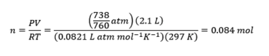 Next, I used the ideal gas law to determine the moles of gas I exhaled out in 17 seconds: