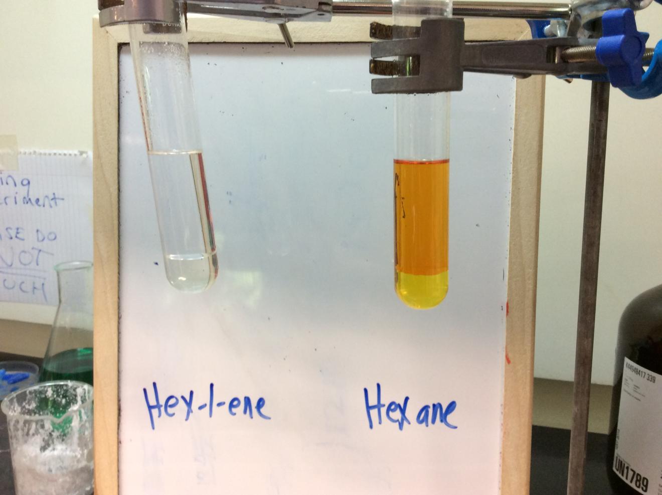 Comparison of Hex-1-ene with Hexane with Bromine Water (without UV light)