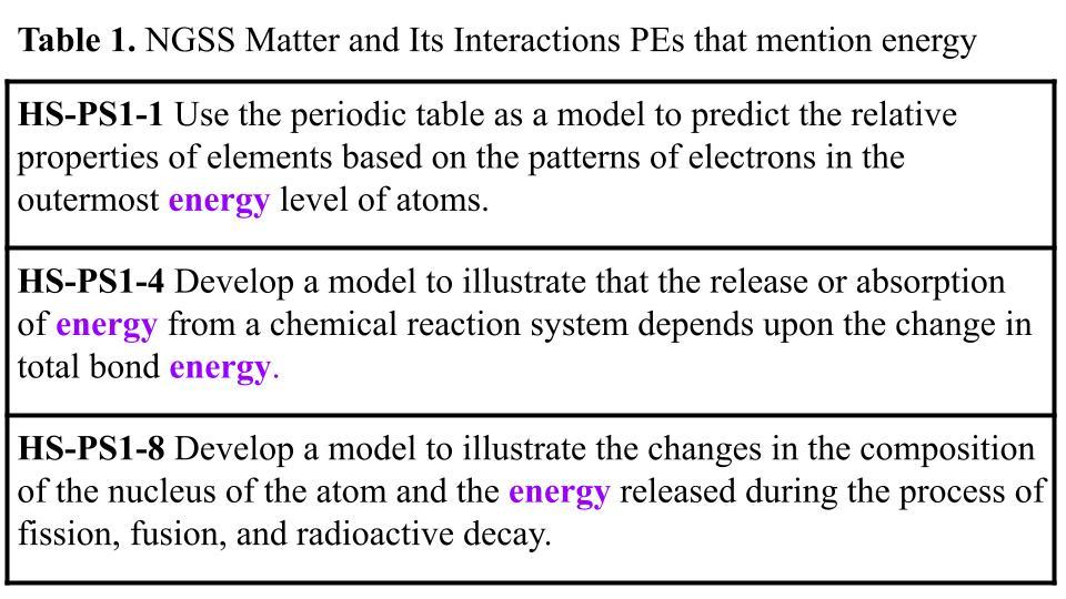 Energy is linked to several performance expectations in the NGSS Matter And Its Interactions standards (Figure 1). So, I like to use the following demonstration to review energy transformation near the beginning of the semester for students to draw on later. This demo is a modification of a classic demonstration, where Elmer’s Coloring Changing glue eliminates the need for some of the specialized equipment.