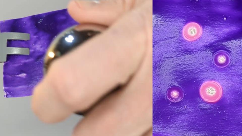 Image 1: Pink circles formed after collision of ball bearings.