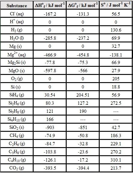 SiH4(g) + 2 O2(g) à SiO2(s) + 2 H2O(l) Equation 8
