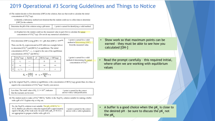 WTNT is a two-sided document - it highlights common errors (great for teachers designing lessons). It offers tips for crafting accurate responses (fantastic for students as they evaluate and revise their work). It is not intended to be a document that teaches content; it was designed to teach students how to be better scientific writers. As I continue to review the Chief Reader Reports, I have noticed that the same mistakes come up repeatedly. I have notated WTNT with specific question parts; consider using those questions as warmups or practice problems in class during instruction. Point out common mistakes if your students make them. Later, during a summative review (like for your midterm or final), use WTNT as a refresher for students. For the most part, the content tips are mistakes that can happen when students read questions too quickly and miss details in the prompt (i.e., write the electron configuration for the ion, not the neutral atom).