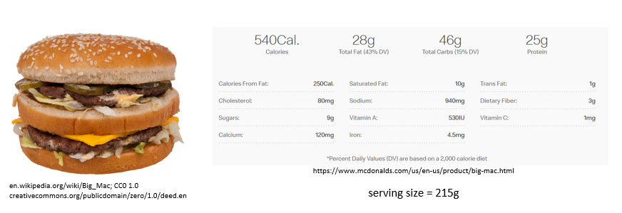 - the 540Cal/Big Mac comes from nutrients (carbs, fat, and/or protein) only.