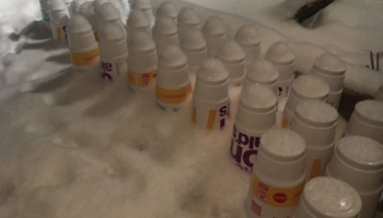 I have found that thin-walled polypropylene containers become less flexible and more brittle when the weather gets cold. These are relatively easy to obtain – look for the #5 PP resin code on the polymer. An example of this is shown in Figure 1 and Video 1 below. Polypropylene container lids were flexible at room temperature, but were quite brittle after sitting outside at -23°C.