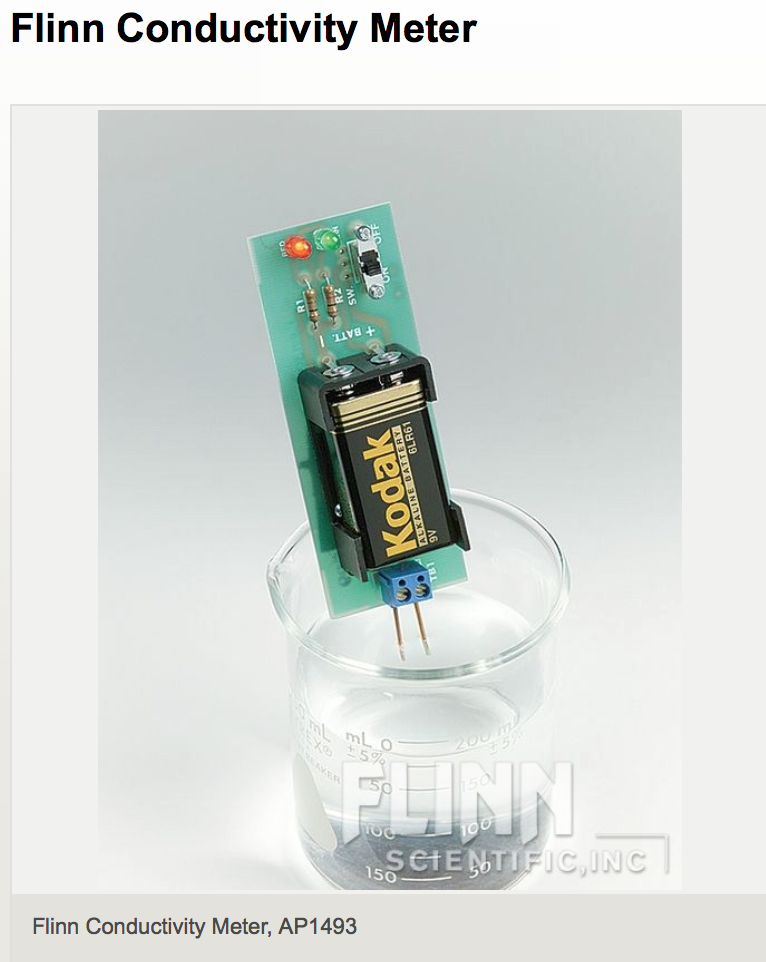 Laurent - Thanks for the comment. There are several possible ways to test for conductivity. First, Flinn Scientific sells a little 9 V conductivity tester. That could be an option. The one that I like is to google DIY Conductivity Tester and tell students that it is an extra credit project over break. An adaption that I like to the DIY conductivity tester is to use carbon electrodes. If you go to a hobby shop that sells remote control airplaines, you can get carbon fiber rods. These are supper durable and conduct electricity. Here is what I did...I took a 9 v battery clip and wired it to a 56 ohm 1/4 watt resistor and 2 red LED lights. I used some extra wire, hot glue and electricians tape with a small wood block to piece everything together. It worked great. However, batteries are expensive. I have a neighbor who works for a wireless phone company. He had a bunch of old modems that his company was going to pitch. I took the 12 V power supplies, spliced the wires and used these to power the conductivity tester. Worked like a charm. FYI...LED's allow current to flow only one way. If you hook up the power and it does not work, just switch the leads. Hope this helps.