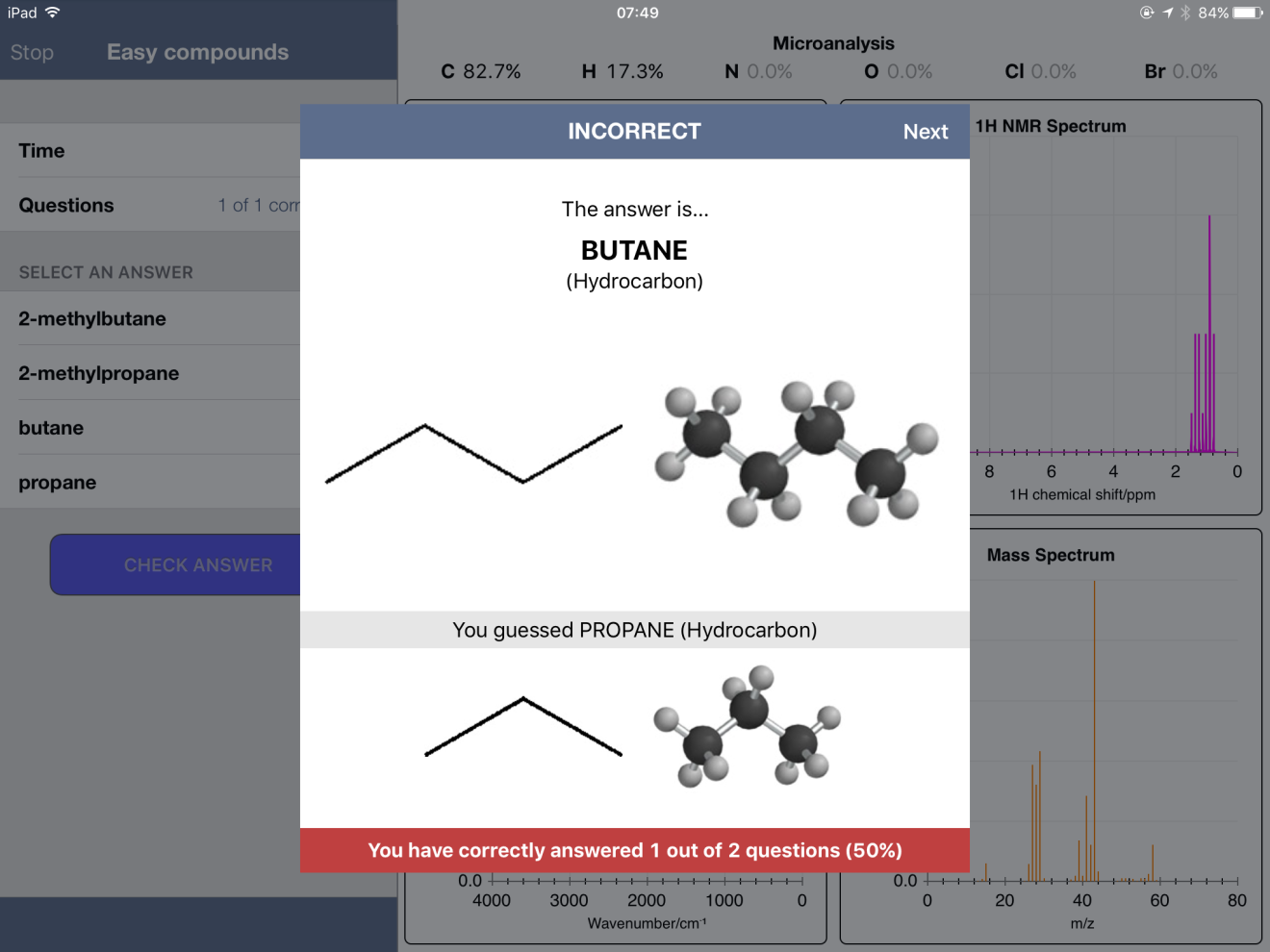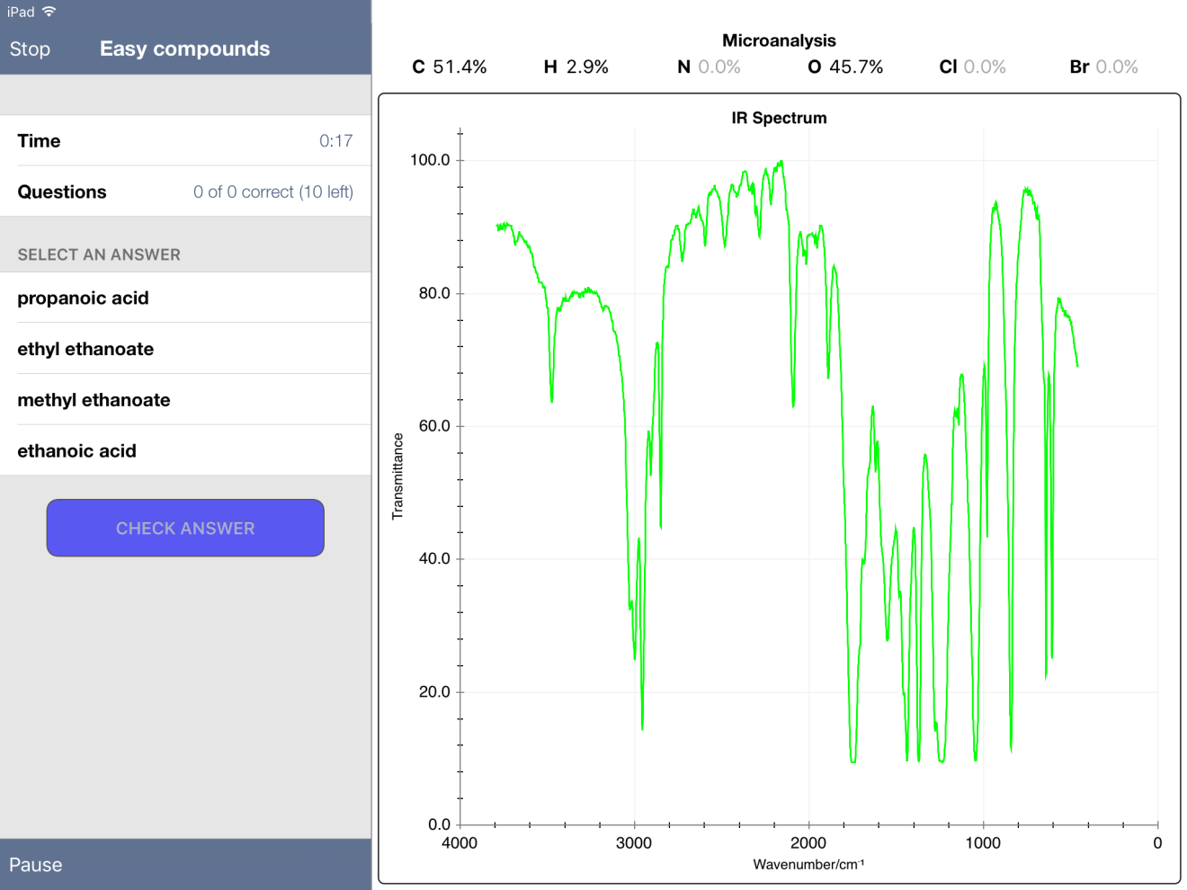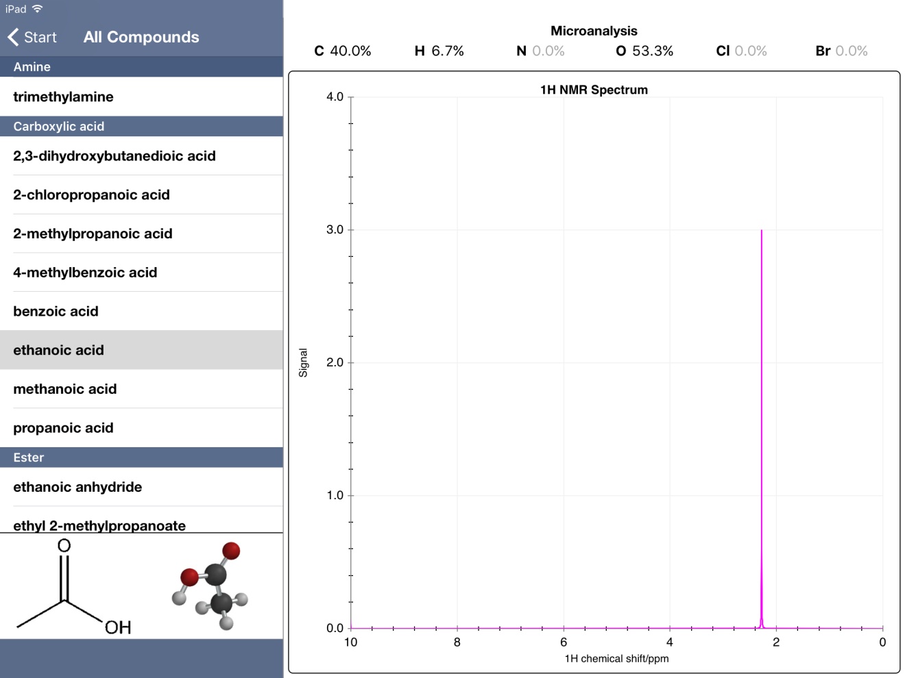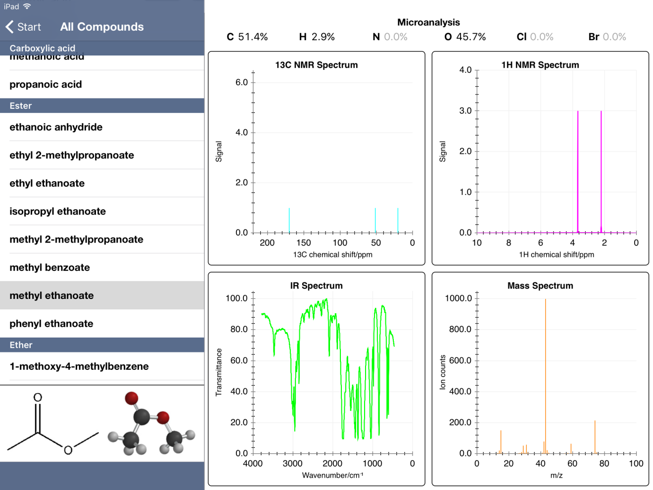 Overall, though, I'd rate this app 4.5/5.0 stars. It's an excellent way for students to practice spectroscopic identification of compounds.