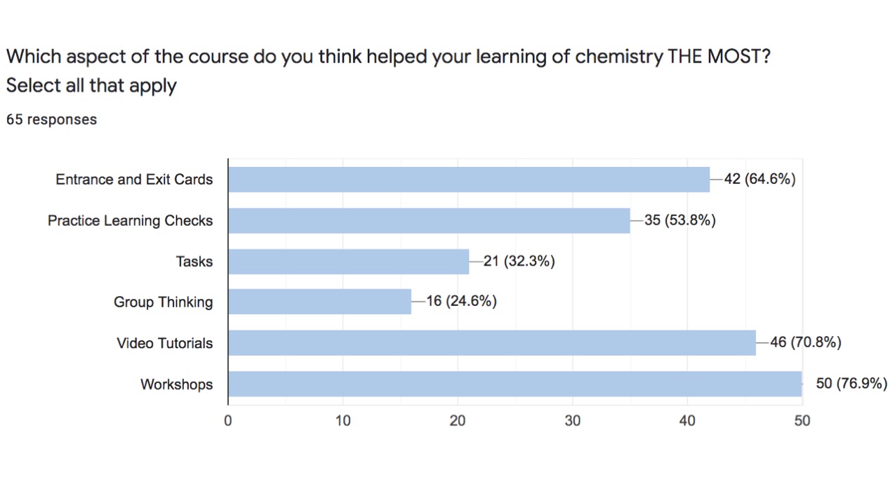 Figure 5: Google Form results for student reflection on MOST helpful aspects of course
