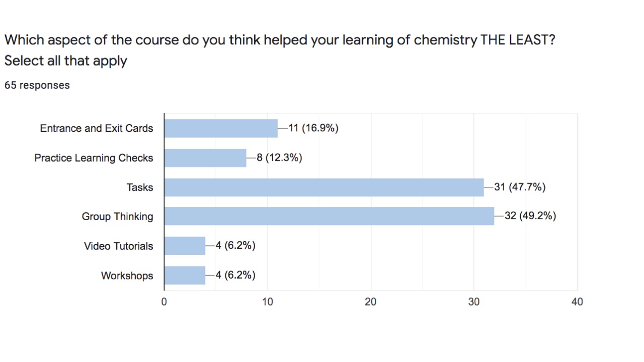 Figure 6: Google Form results for student reflection on LEAST helpful aspects of course