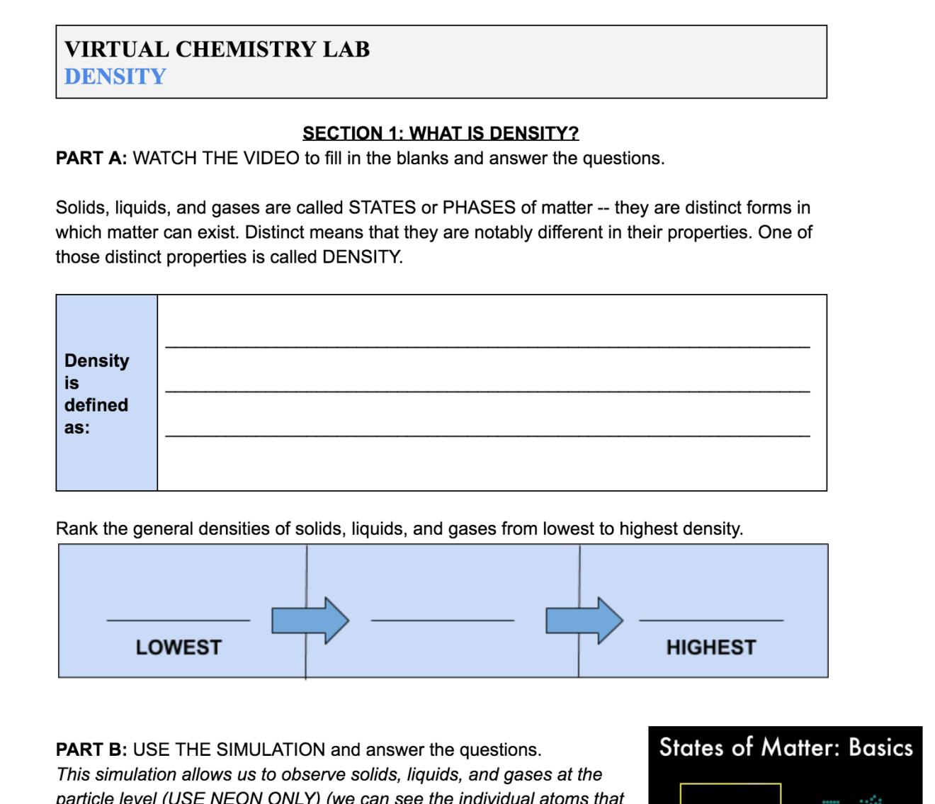 Image 3: My first virtual chemistry lab will investigate the macro and particle-level understanding of density.