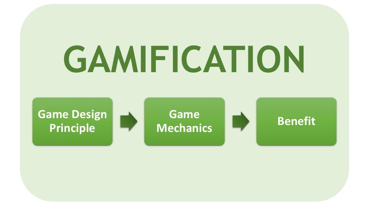 Figure 1: The benefits of gamification are due to game design principles that are implemented through game mechanics.