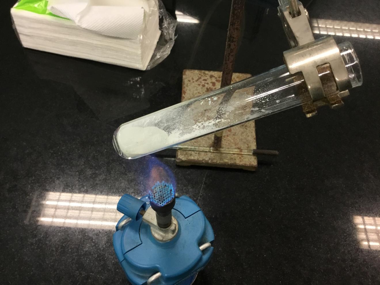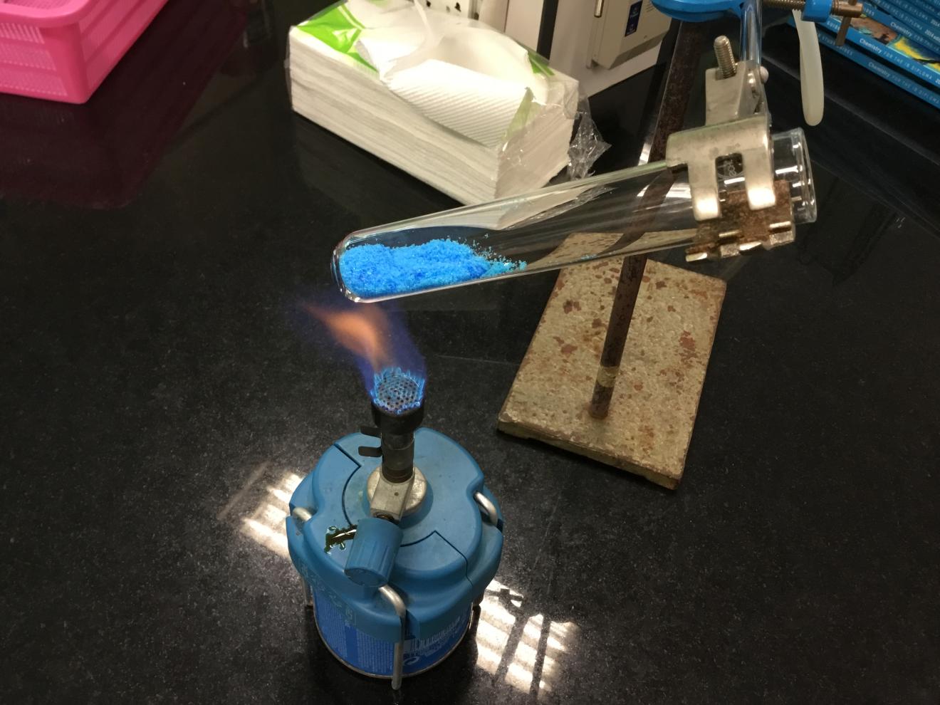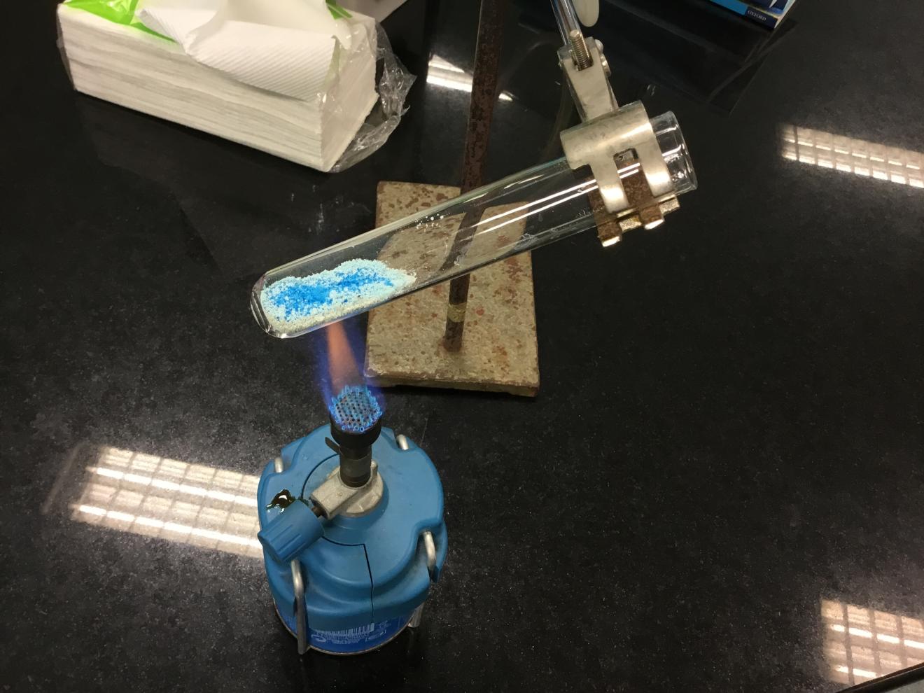 Recently I was chatting with a friend about my time in Los Angeles and I recalled a story I would like to share. My dad came down to Los Angeles to visit me for a few days. And being a chemist, he joined me in the classroom. The lesson plan for the day involved calculating the number of waters of hydration in copper (II) sulfate pentahydrate. I would say this is a "classic" lab where the students heat a sample of the hydrated crystal until it is dry. They use the masses involved to calculate a mole ratio and determine the number of waters of hydration. Below are a few pictures from a recreation I set up today.